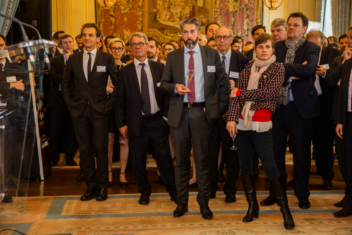 Trophée remis à Antoine Courtois, (2ème en partant de la gauche) Directeur Général de ATELIER DE FRANCE par Alban Neveux (extrême gauche) Directeur Général - Advention Business Partners.
