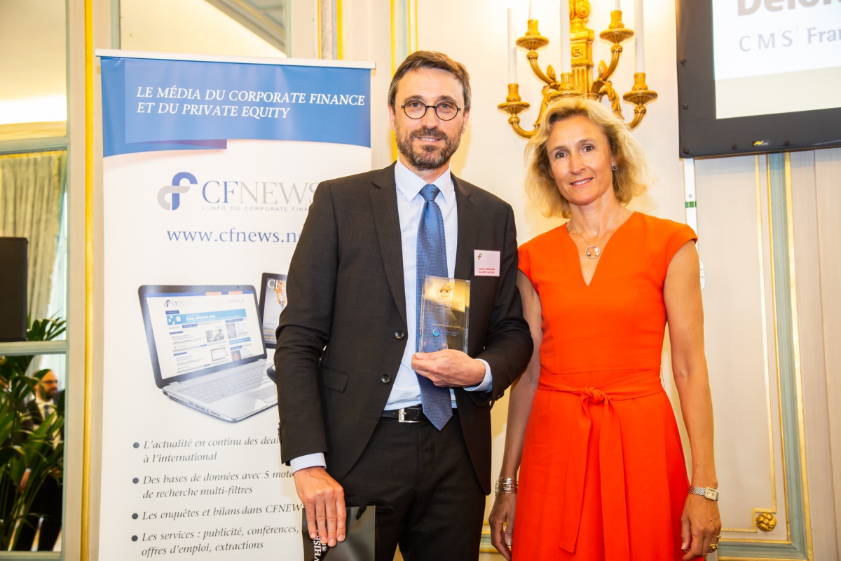 Trophée remis à Ingo Dauer (à gauche), Directeur Juridique de GROUPE L'OCCITANE par Franck Portais (à droite) Associé Gérant - Alantra .