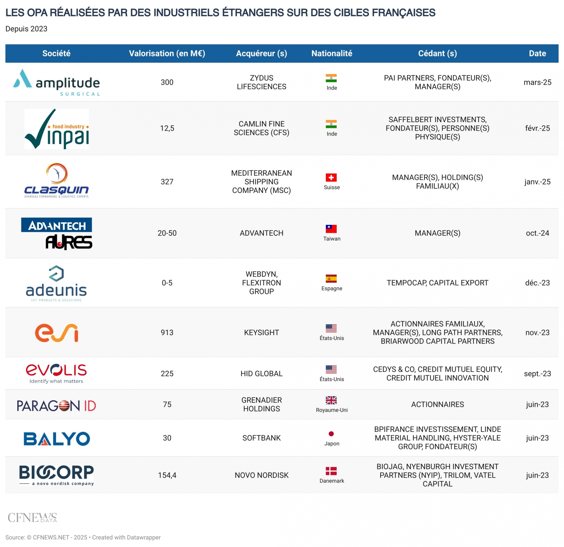 Les entreprises françaises séduisent les groupes indiens. Après la reprise de Zeenea par HCL Technologies en septembre 2024 et l’OPA lancée par Camlin Fine Science sur Vinpai, un autre acquéreur convoite une société tricolore. Zydus, forte 2 Md$ (1,8 Md€) de chiffre d’affaires, est entrée en négociations exclusives en vue d’acquérir 85,6 % du capital d’Amplitude Surgical. La pharma originaire d’Ahmedabad est conseillée dans cette opération par BNP Paribas CF. Elle devrait s’emparer de ce bloc auprès de PAI Partners Mid Market (l’actionnaire de contrôle), du management et de deux autres actionnaires minoritaires – conseillés par Rothschild & Co. La transaction devrait être finalisée d’ici l’été, une fois toutes les autorisations réglementaires levées (dont le contrôle des investissements étrangers). Elle est signée pour 6,25 euros par titre du fabricant drômois d’implants chirurgicaux. Ce prix reflète une prime de 80,6 % par rapport au cours de clôture du 10 mars, veille de l’annonce, du groupe tricolore coté sur le Compartiment B d’Euronext Paris. Zydus devrait donc débourser 256,8 M€ pour s’emparer de cette position majoritaire et son offre fait ressortir une capitalisation de 300 M€. En incluant la dette nette de quelque 90 M€ affichée au 30 juin à la clôture des comptes annuels 2023-2024, la valorisation ressort autour de 390 M€, soit 13,7 fois l’Ebitda estimé à fin décembre 2024.