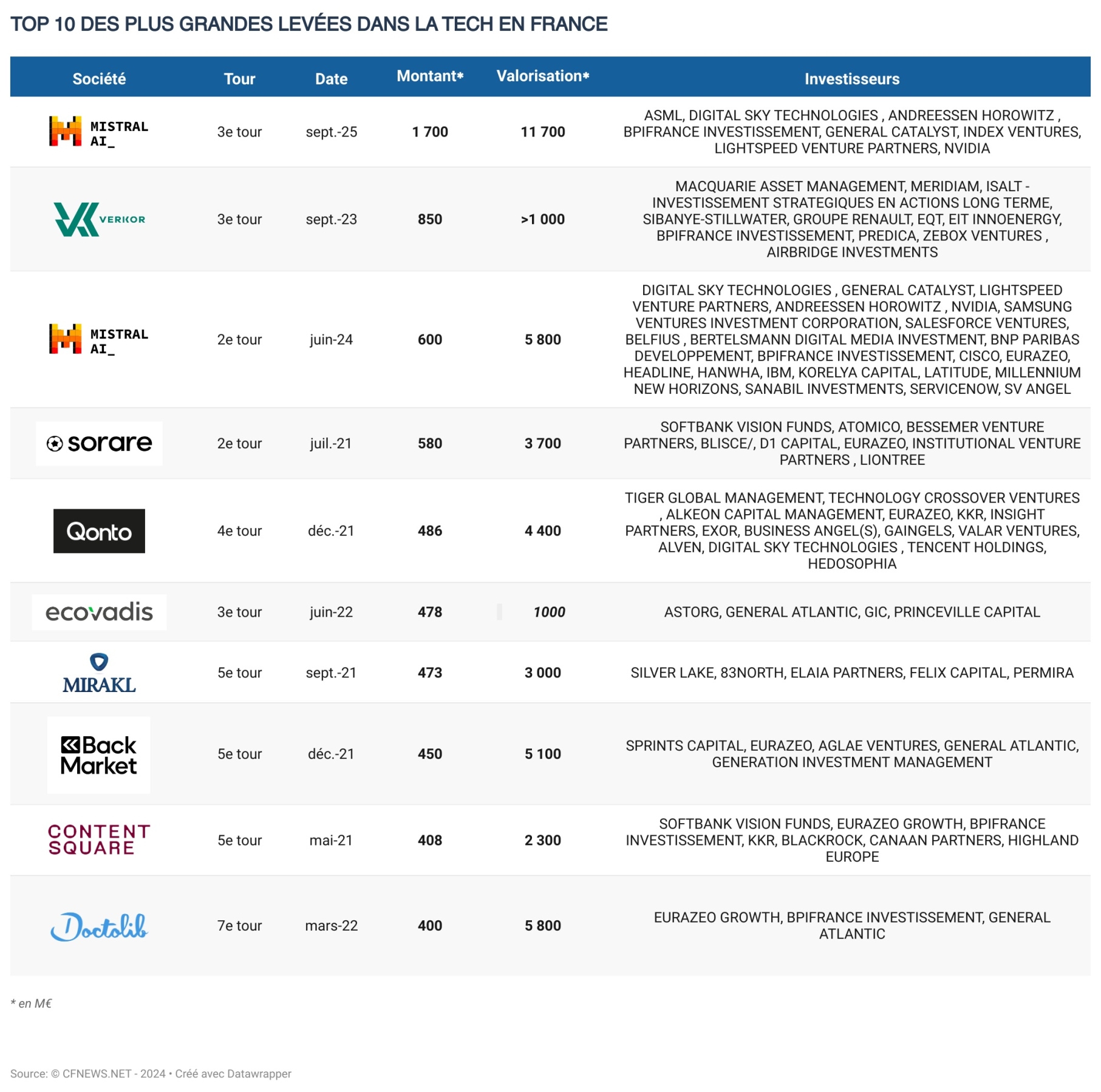 Mistral jouit de l'engagement d'un acteur européen de référence dans la micro-électronique pour son nouveau tour de table record. Le créateur de modèles d'intelligence artificielle générative devient la première start-up — voire scale-up, malgré ses deux ans et demi d'âge — du continent, à boucler un tour dépassant le milliard d'euro avec une série C à 1,7 Md€. Le meneur, avec un ticket d'1,3 Md€, est ASML, le fournisseur néerlandais de machines de lithographie permettant à TSMC, Intel ou encore Samsung, de fabriquer leurs puces. La valorisation atteint 11,7 Md€, post-money. Au-delà de la relation capitalistique, faisant du nouvel entrant le principal actionnaire avec environ 11 % des parts, derrière les co-fondateurs Arthur Mensch, Guillaume Lample et Timothée Lacroix, encore majoritaires, ASML et Mistral engagent un partenariat stratégique. Le groupe néerlandais affirme vouloir explorer l’utilisation de modèles d’IA dans l’ensemble de son portefeuille de produits, afin d’offrir à ses clients une mise sur le marché plus rapide de ses systèmes de lithographie.