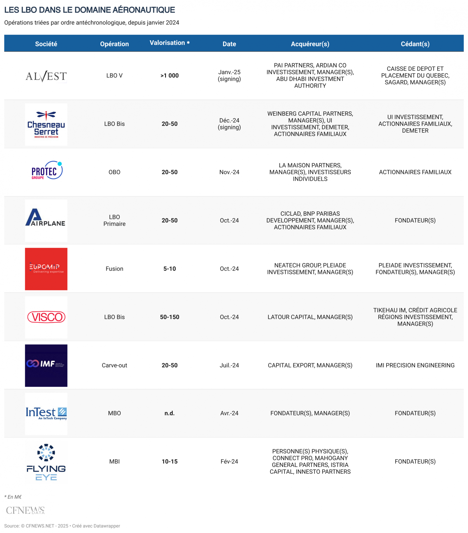 Plus de sept ans après son LBO quaternaire avec CDPQ, Ardian et Sagard, Alvest change de pilote. Dans le cadre d'un processus de cession organisé par Morgan Stanley, le fabricant de produits techniques pour l’industrie aéronautique est entré en négociations exclusives avec PAI Partners. Conseillé par Rothschild & Co et Crédit Agricole CIB, ce dernier s’offrira une position majoritaire à travers son fonds VIII en misant un ticket commun avec son LP Abu Dhabi Investment Authority (Adia) de l'ordre de 800 M€, selon nos informations. Ardian participe au nouveau tour avec son sixième véhicule de co-investissement qui a achevé sa levée cet été, mobilisant une enveloppe « beaucoup plus importante » que son ticket moyen de 60 M€. CDPQ et Sagard signent quant à eux leur sortie. Une enveloppe de près de 900 M€ de dette fournie par BNP, Crédit Agricole, ING et UBS complète le montage. L’opération, réalisée sur la base d'une valorisation avoisinant 1,8 Md€ d’après un chiffre publié par L’Informé confirmé à CFNEWS, devrait se finaliser cet été. La signature de ce cinquième LBO intervient alors qu’Antoine Maguin, qui avait lui-même succédé à Jean-Marie Fulconis en 2021 au poste de CEO, passe la main à Valentin Schmitt. Ce dernier est toujours épaulé par Laurent Jamet, CFO et deputy CEO.