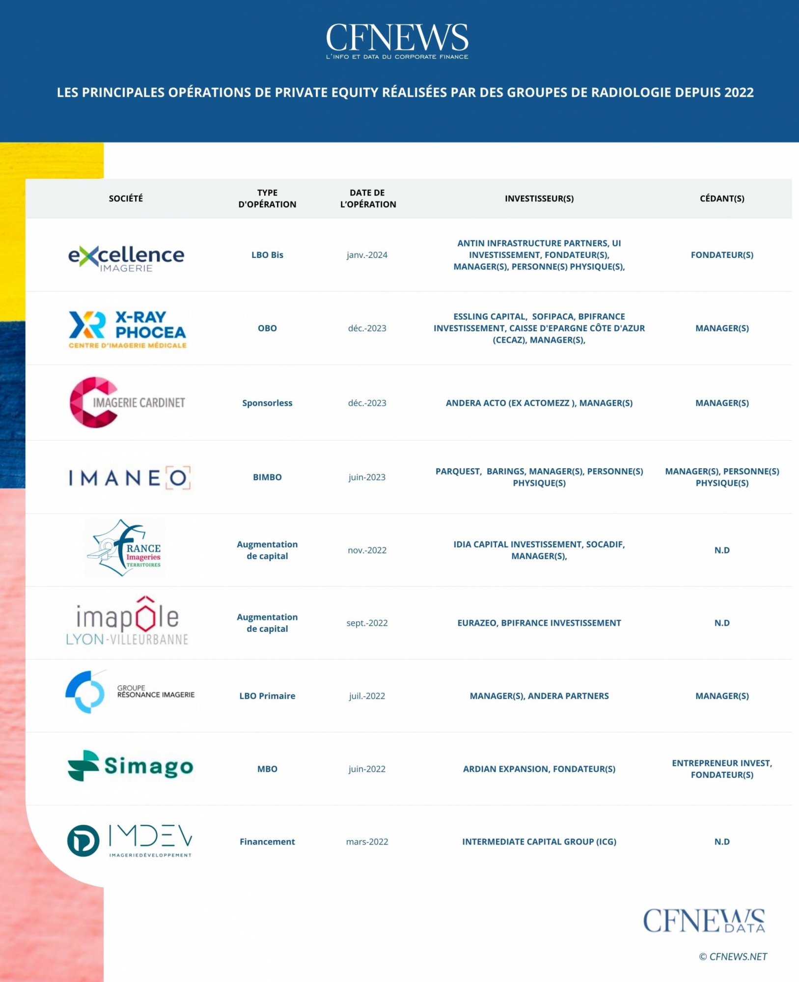 Les principales opérations de private equity réalisées par des groupes de radiologie depuis 2022 © CFNEWS.net