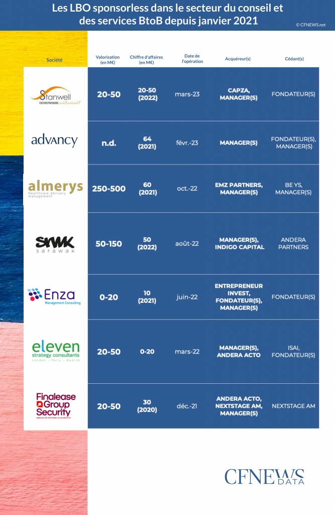 Les LBO sponsorless dans le secteur du conseil et des services BtoB depuis janvier 2021 © CFNEWS.net
