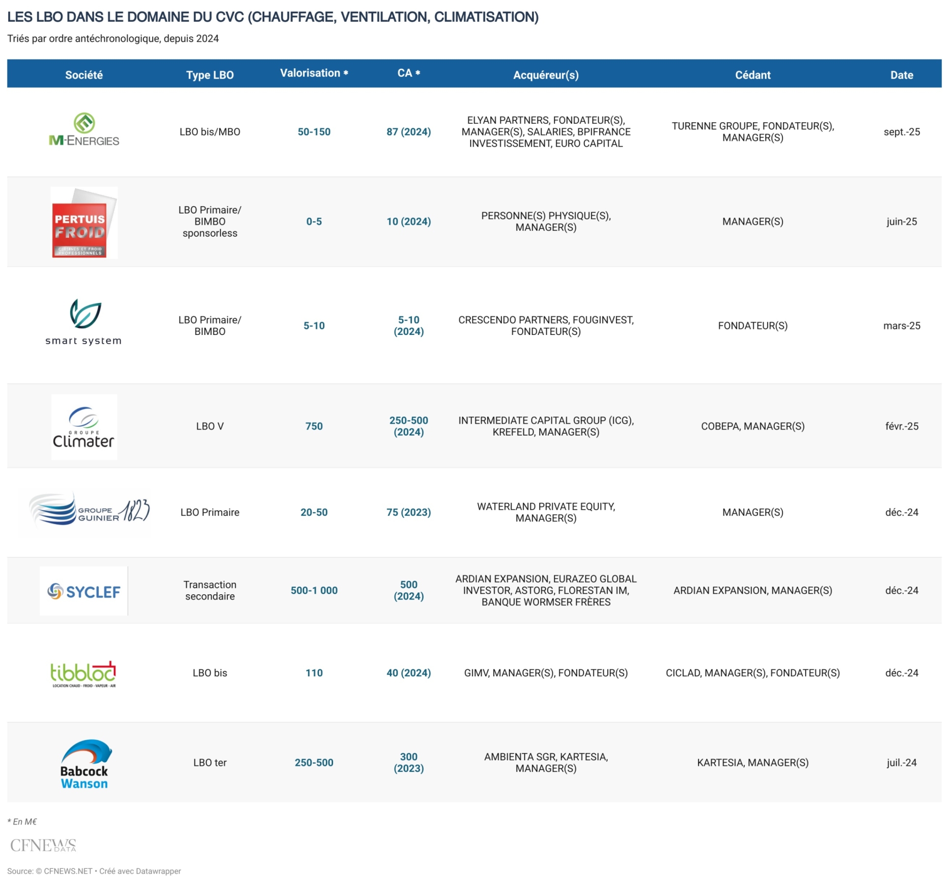 Lancée en 2009 sur les fondations de la Société Lorraine d’Exploitation de Chauffages créée en 1968, M-Energies a construit un groupe d’installation et de remplacement de chauffage et climatisation qui réunit aujourd’hui 540 collaborateurs. En 2024, il a généré près de 85 M€ de chiffre d’affaires et 8 à 9 % de marge d’Ebitda. « M-Energies participe à l’amélioration de la performance énergétique des bâtiments, un sujet que nous connaissons bien, confie Laure Lamm-Coutard, associée chez Elyan Partners. Le modèle économique de la société est très résilient avec un positionnement essentiellement sur la maintenance, par abonnements donc avec une bonne visibilité, et une base clients variée, diversifiée et fidèle. L’objectif est de conserver ces forces et accélérer la croissance, dans un marché en consolidation mais encore extrêmement fragmenté. » L'entreprise intervient sur les chauffages traditionnels (gaz ou électriques), comme plus durables (des pompes à chaleur, photovoltaïque...), pour les marchés collectifs en B2B, mais aussi auprès des particuliers et pour l’industrie et le tertiaire. M-Energies poursuivra tout d’abord son maillage dans ses deux régions de prédilections, l’Île-de-France et le Grand Est, avant d’étendre son périmètre à l’échelle nationale.