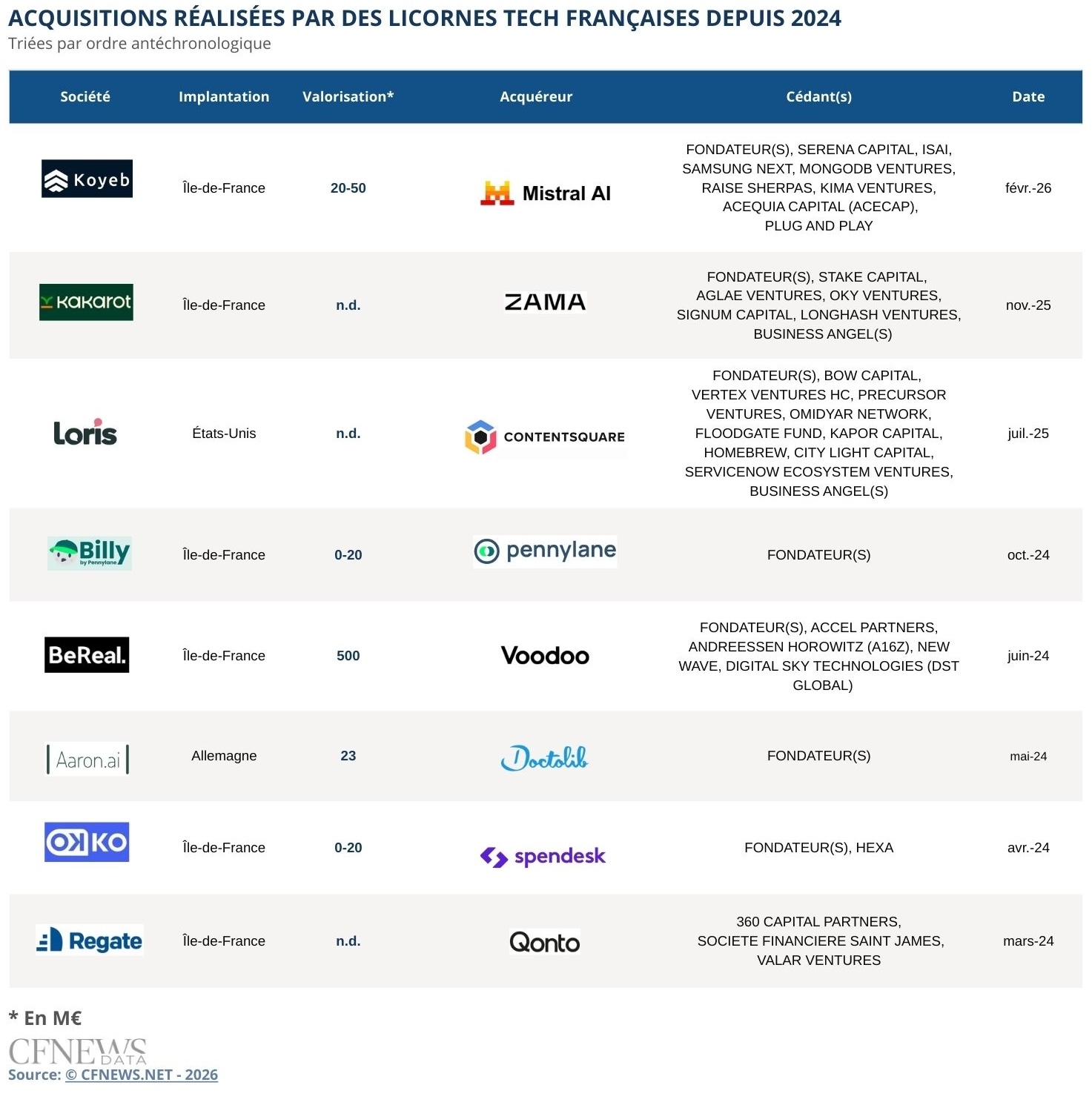 La première acquisition de Mistral muscle un service annexe à celui de création de modèles de fondation en intelligence artificielle. La pépite française, qui a levé 1,7 Md€ en octobre auprès d'ASML, principalement pour bâtir et exploiter des infrastructures de calcul, lançait alors une offre de cloud compute. Celle-ci permet à des tiers d'utiliser ses serveurs pour entraîner et déployer leurs propres systèmes d'IA. Cet axe est renforcé par l'acquisition de Koyeb, start-up à l'origine d'une solution facilitant le déploiement d'applications logicielles sur le cloud, en premier lieu pour les PME et TPE. Lors de l'annonce de sa levée de 6 M€ en 2023, la start-up d'une quinzaine de salariés indiquait vouloir adapter sa solution aux applications IA — objectif qui a donc été atteint. Le détail de la transaction n'est pas communiqué. Toutefois, selon nos sources, le paiement se fait à travers un mélange de numéraire et d'actions Mistral. La valorisation dépasse 50 M€ en incluant les dettes et le management package. La cible était majoritairement détenue par ses fondateurs, aux côtés de VCs dont Serena, Isai, Samsung Next, MongoDB et Raise Sherpas.