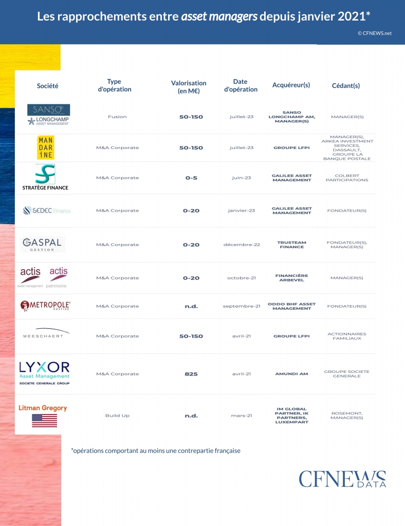 Les rapprochements entre asset managers depuis janvier 2021* © CFNEWS.net