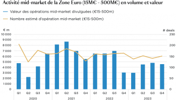 Après un S1 2023 accusant une baisse de 35% selon In Extenso Finance, les opérations valorisées moins de 50 M€ ont repris un peu de vigueur pour finir l’année sur un repli de...