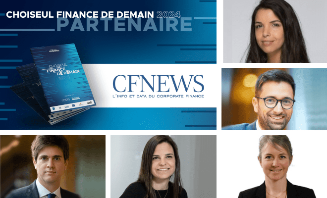 L'Institut Choiseul a publié ce mardi 27 février le tout premier classement « Finance de demain », en partenariat avec CFNEWS et Haussmann Executive Search. Selon les critères de sélection détaillés par Paul Gadel (Choiseul), Agathe Zilber (CFNEWS) et Emmanuel Cazier (Haussmann ES) dans cette vidéo qui revient également sur la genèse du projet, chacune des cinq catégories du palmarès a distingué 20 talents de moins de 40 ans et récompensé un Top 5. En Financement, les profils de Laurie Chesné, Mélissa Cohen, Charles Dehaene, Aude Gemayel et Carl Marin se sont ainsi particulièrement démarqués. Retrouvez leur biographie complète et leurs derniers deals phares ci-dessous et sur leur fiche CFNEWS :