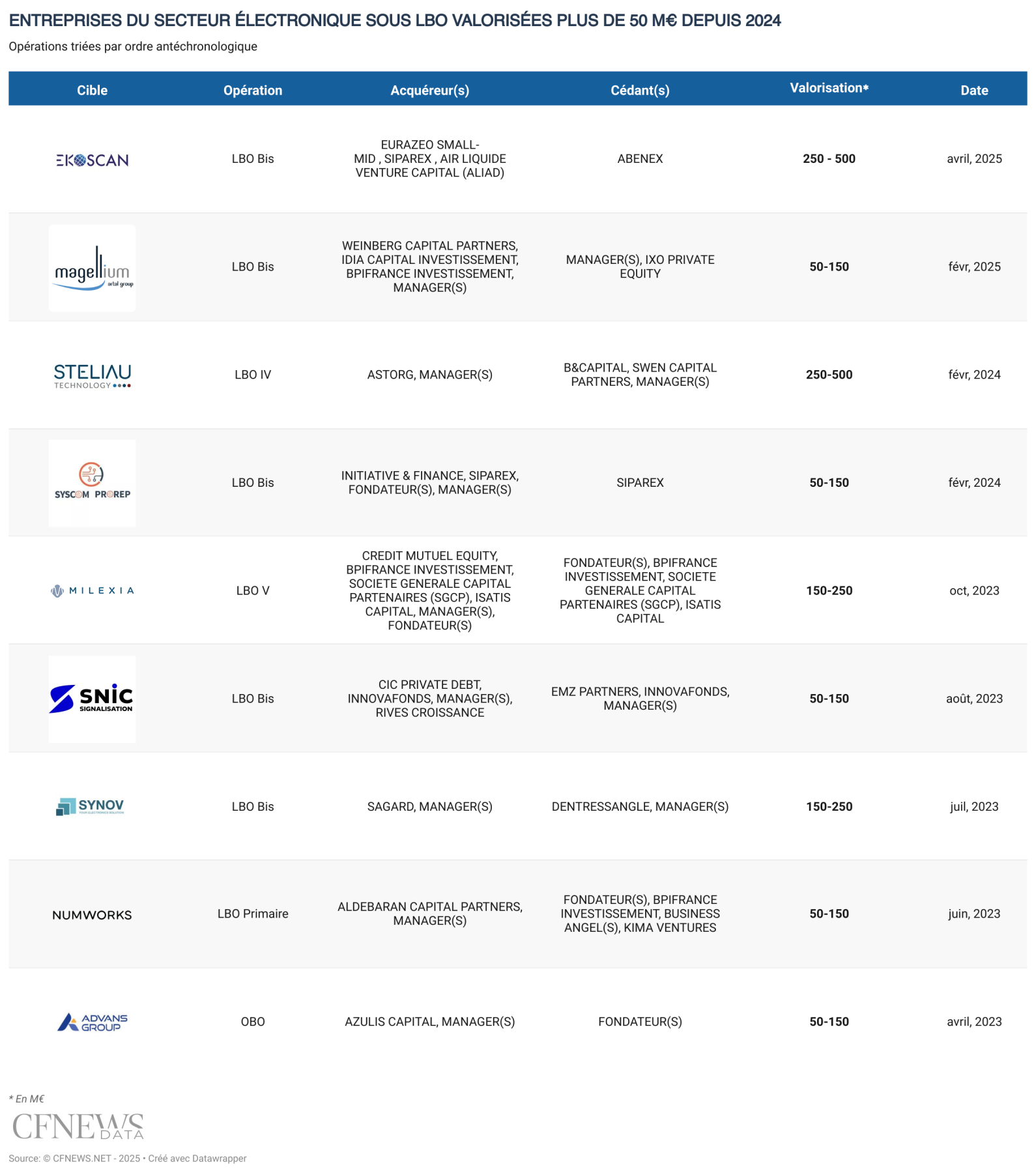 Les ondes d'Ekoscan continuent de prendre de l'ampleur avec un nouveau partenaire financier. La société fournissant des équipements et des services de contrôle non destructif, notamment sur la base de technologies ultrasonores, pour les infrastructures critiques, avait fait entrer Abénex en 2022 aux côtés d'EDF Pulse Ventures et Aliad (Air Liquide), afin de poursuivre une stratégie de croissance externe. Un partenariat qui a largement porté ses fruits puisque la société a presque quintuplé de taille, atteignant 60 M€ de chiffre d'affaires en 2024. Cinq acquisitions ont été réalisées, offrant notamment à la société une envergure internationale. « Dès notre entrée, l'équipe de management a su rapidement mettre en place son plan de croissance externe grâce à un pipeline déjà bien structuré. Notre sortie a ainsi pu être organisée plus rapidement que prévu pour permettre à la société de poursuivre sa dynamique », indique Thomas Peretti, partner chez Abénex. Le fonds, investi via son véhicule Small-Cap I, réalise ainsi ici un multiple brut de 4,3.