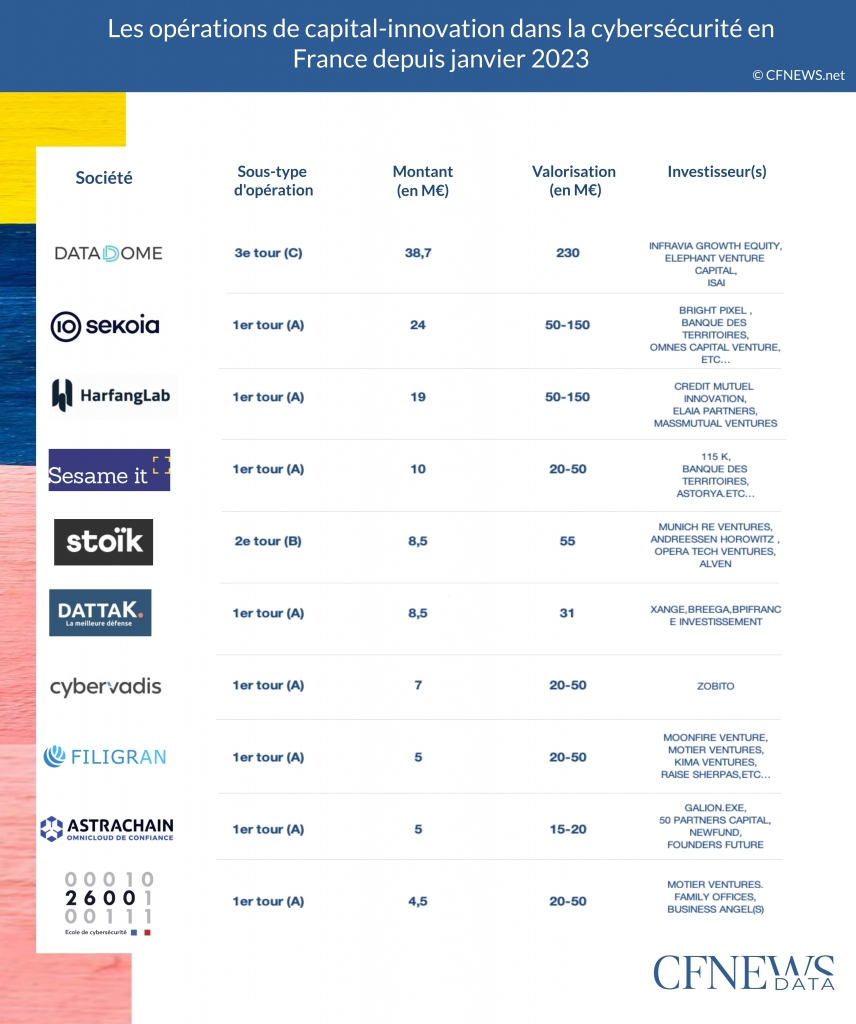 La deuxième levée de fonds d'HarfangLab s'est déroulée dans un contexte très différent de l'euphorie dans la tech lors de son tour d'amorçage en 2021. Si le processus auprès des VCs, conduit par Clipperton, a pris davantage de temps, en l'occurence six mois, il s'est bouclé au milieu du mois d'août sur un montant significatif pour une série A. L'éditeur d'un logiciel de cybersécurité luttant contre les attaques sur ordinateurs et serveurs lève 19 M€ en augmentation de capital, auxquels s'ajoutent 6 M€ de financement non dilutif. Crédit Mutuel Innovation entre en chef de file, devant MassMutual Ventures, le fonds de l'assureur américain MassMutual, et l'historique Elaia Partners. La valorisation retenue porterait sur un multiple de l'ordre de 12 fois l'ARR, soit légèrement au-delà de 100 M€ selon nos informations. MassMutual Ventures a commencé à investir en Europe l'année dernière et HarfangLab y constitue sa dixième ligne mais la première en France. « Pour ce tour, nous cherchions un investisseur étranger, mais qui ne serait pas lead. MassMutual, dont le profil de mutuelle le rapproche de Crédit Mutuel Innovation, dispose de gros moyens sans être intrusif », assure Grégoire Germain, président co-fondateur de la start-up.