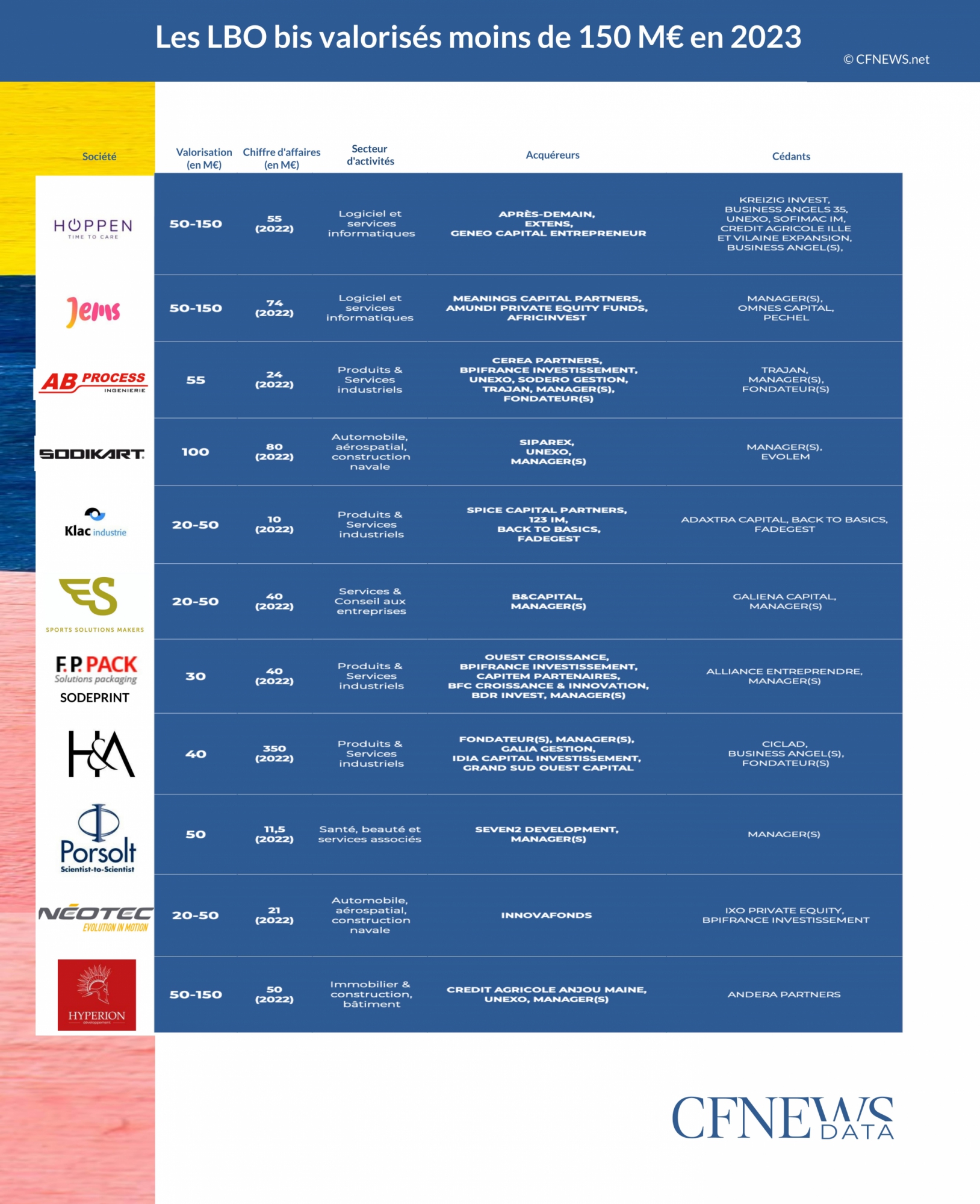 Les LBO bis valorisés moins de 150 M€ en 2023 © CFNEWS.net