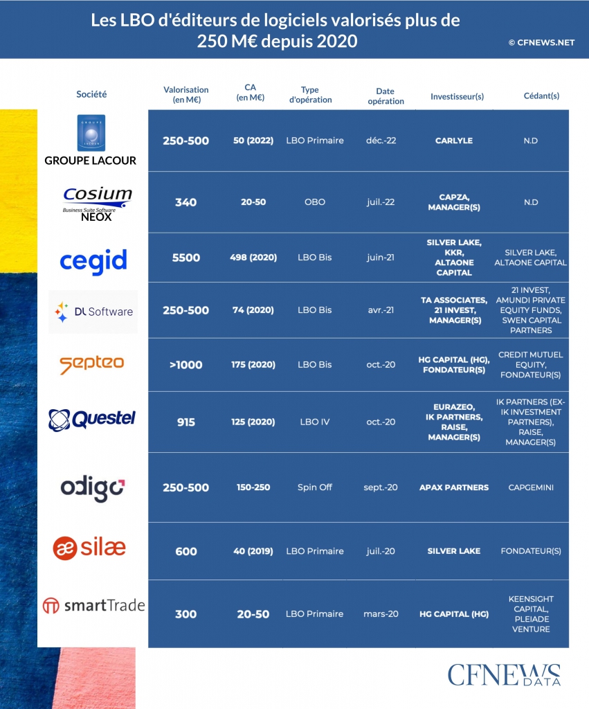 Les LBO d'éditeurs de logiciels valorisés plus de 250 M€ depuis 2020 © CFNEWS.net