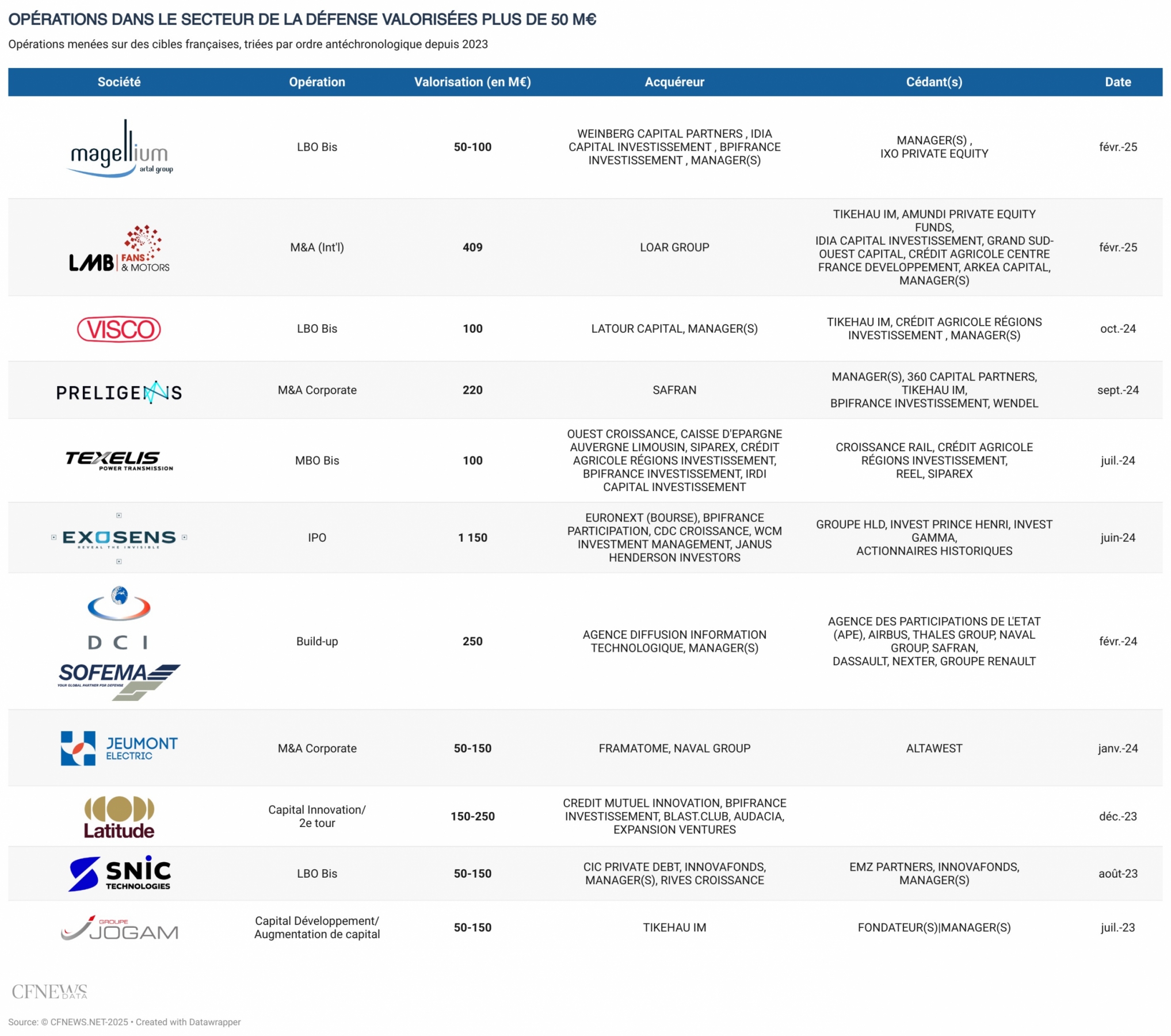 Huit ans après le rachat du spécialiste du traitement de données satellites Magellium par Artal, le groupe d’ingénierie scientifique, logicielle et technique change de contrôle. Intervenant notamment dans les domaines de l’aérospatial et de la défense, Magellium Artal avait ouvert son capital en 2020 dans un LBO minoritaire avec iXO Private Equity, qui passe aujourd’hui la main. À l’issue d’un processus orchestré par Investec et réservé aux industriels et quelques fonds du secteur, Weinberg Capital Partners, sorti victorieux, prend une participation majoritaire à travers son fonds Eiréné. Le véhicule dédié à la défense et la sécurité signe son troisième investissement et a ainsi déployé un peu plus du tiers des 215 M€ réunis pour son closing final en début d’année. Idia Capital Investissement et Definvest, le fonds de la DGA géré par Bpifrance, participent également à l’opération valorisant Magellium Artal entre 50 et 100 M€. Le duo de fondateurs, Pierre Duverneuil, président, et Raphaël Giraud, directeur général, cède le contrôle mais reste le premier actionnaire minoritaire. Une dette senior fournie par Banque Populaire Occitane, Caisse d’Epargne Midi-Pyrénées et LCL complète le montage avec un levier compris entre 3 et 4 fois l’Ebitda.