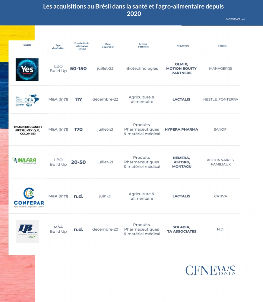 Les acquisitions au Brésil dans la santé et l'agro-alimentaire depuis 2020 © CFNEWS.net
