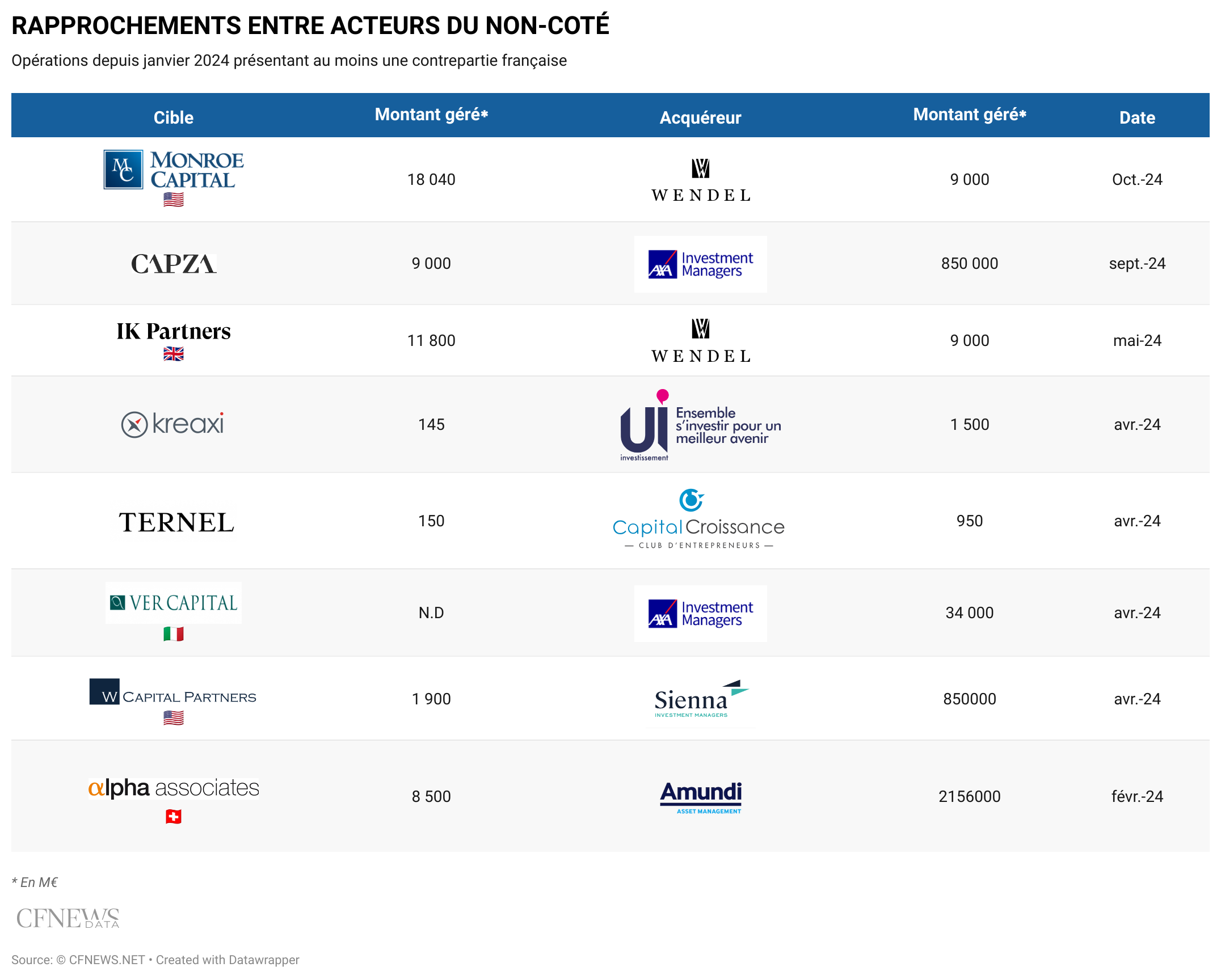 Après l'acquisition d'IK Partners, le rachat de Monroe permettrait à Wendel de porter sa plateforme d'actifs privés à environ 31 Md€ d'actifs sous gestion, pour 455 M€ de revenus pro forma (dont 25 M€ de carried) attendus en 2025 et près de 160 M€ de FRE avant impôts. « La base clients de IK et de Monroe est très complémentaire et nous laisse penser qu'il existe un fort potentiel de cross selling », précise Cyril Marie, directeur général adjoint stratégie et développement corporate de Wendel, qui entend mettre en place également une plateforme de levées de fonds centralisée. Historiquement tournée vers l'investissement pour compte propre, la société d'investissement cotée poursuit donc sa mue vers un modèle « hybride » en misant sur une classe d'actifs porteuse. « Le crédit privé est très mature en Amérique du Nord, mais bénéficie toujours d'un fort potentiel de croissance, notamment sur le middle market, segment caractérisé par de meilleures conditions de transactions et de fortes barrières à l'entrée pour les GPs », explique Cyril Marie, rappelant que, sur un marché de la dette privée mondial profond de 1,3 tn$, quelque 829 Md$ seraient situés sur le marché US. En milieu de journée, après l'annonce, la société d'investissement tricolore gérant 7,2 Md€ pour compte propre voyait son cours de Bourse s'apprécier de +0,91 % pour atteindre 93,8 € par action. Après l'intégration de Monroe, Laurent Mignon n'exclut pas de regarder d'autres sujets de croissance externe.